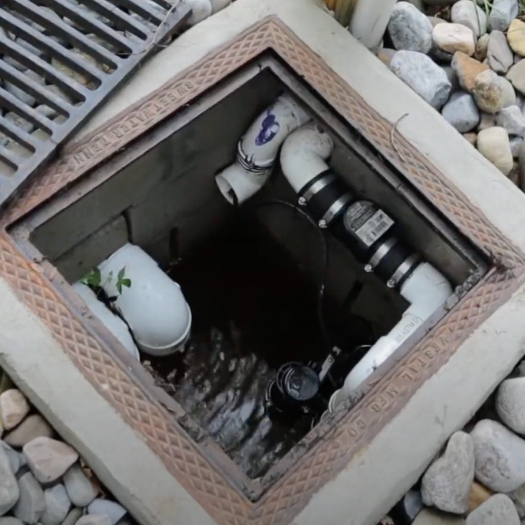 Outdoor sump pump systems are used when stormwater or groundwater cannot move away from the property through gravity alone. These systems help collect water from footing drains, French drains, yard drainage systems, and other stormwater collection points before pumping that water safely into an approved discharge location or underground drainage network.